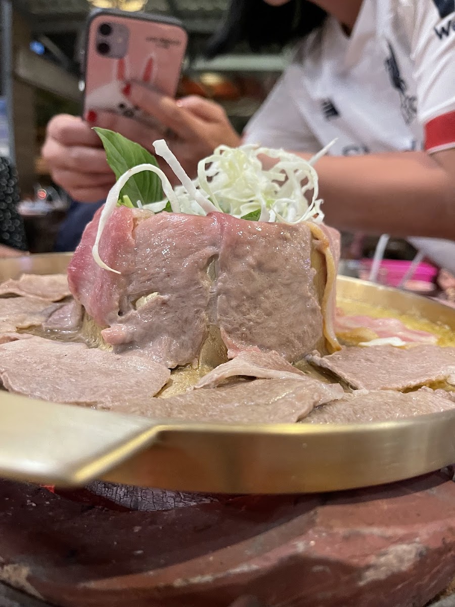 Great for self cooking which is very popular here abouts the steak was good and the beef liver great also. Hot plates don’t come out very hot which is an issue for me. Cold beer always nice and friendly service from lovely ladies. Has entertainment but it doesn’t need it also has many large screen TVs again not sure why as it’s a steak house or shabu so don’t watch it and never seen anyone else do so either.